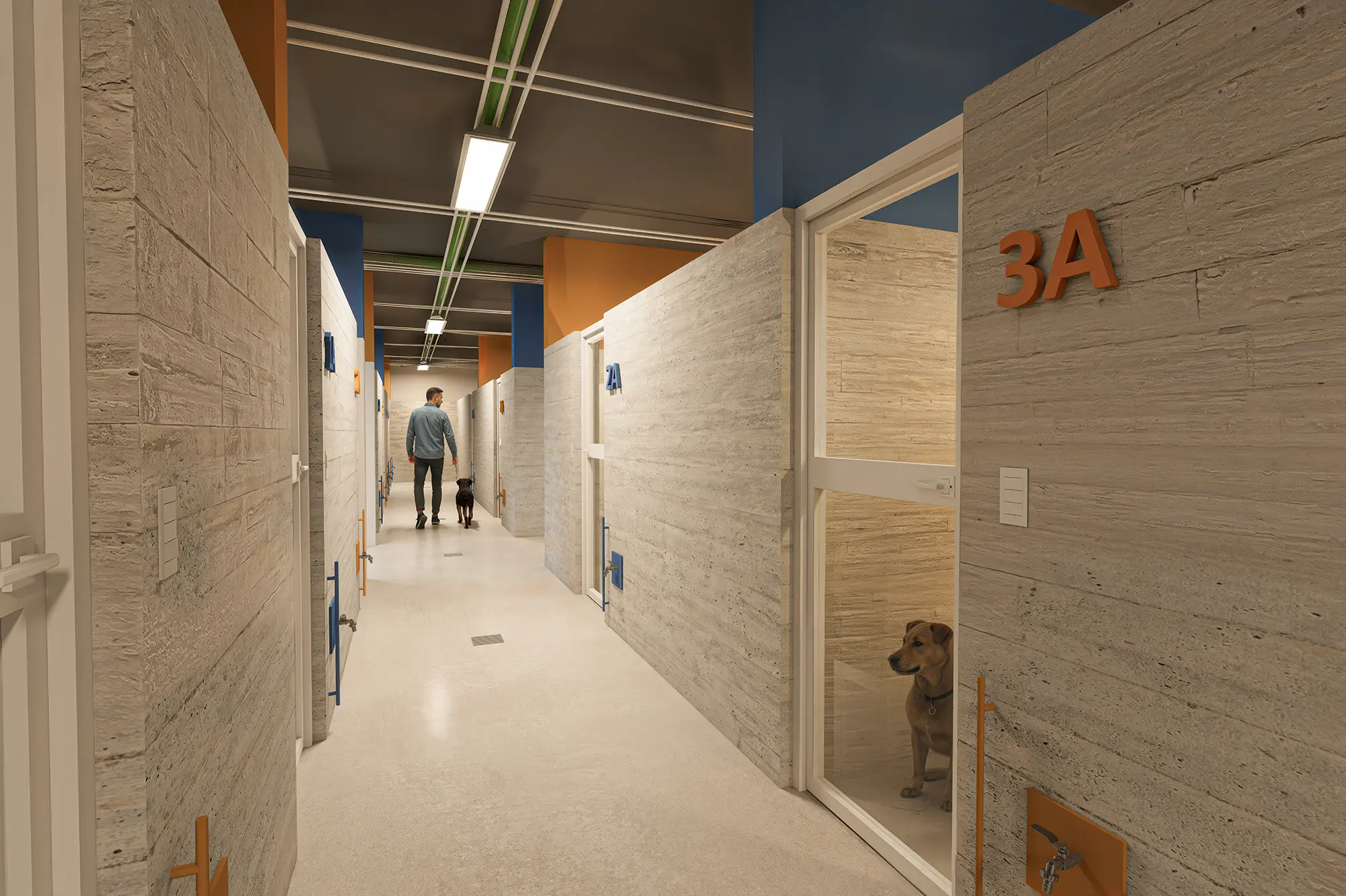 Generously 2×2 m-sized private suites designed for comfort, rest, and temperature-controlled relaxation in every season, each equipped with a comfortable bed for your dog.