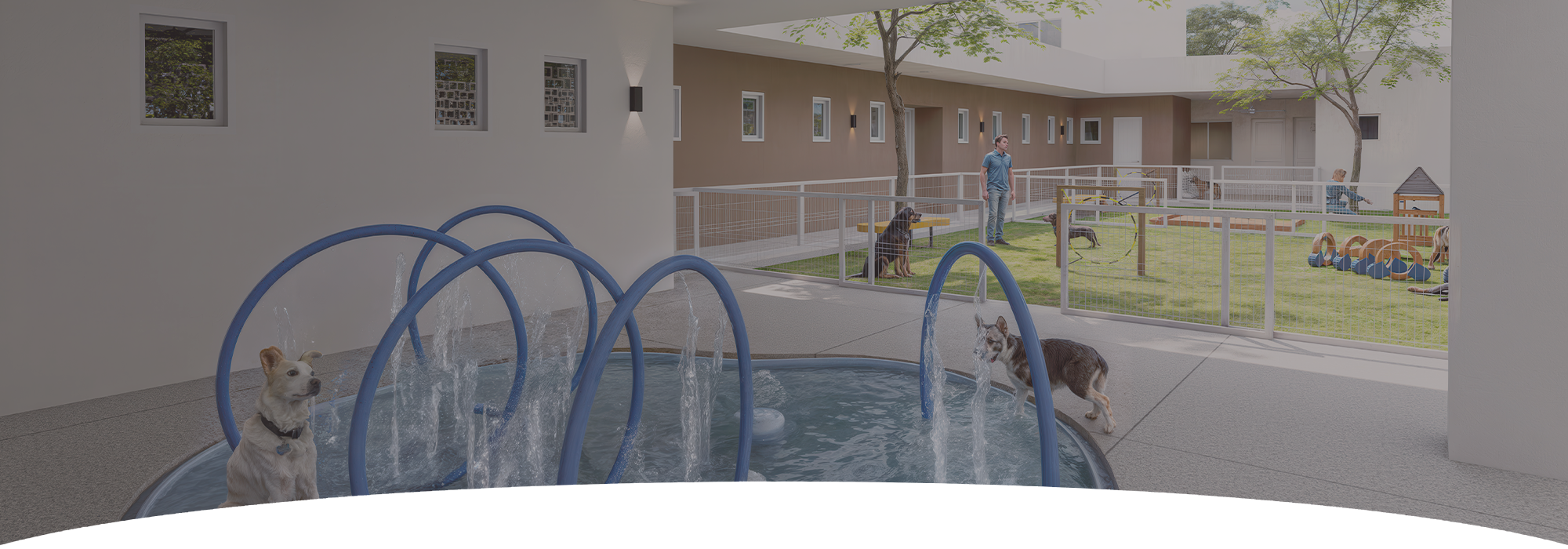 A supervised splash pool where dogs can cool off and enjoy safe, refreshing playtime.